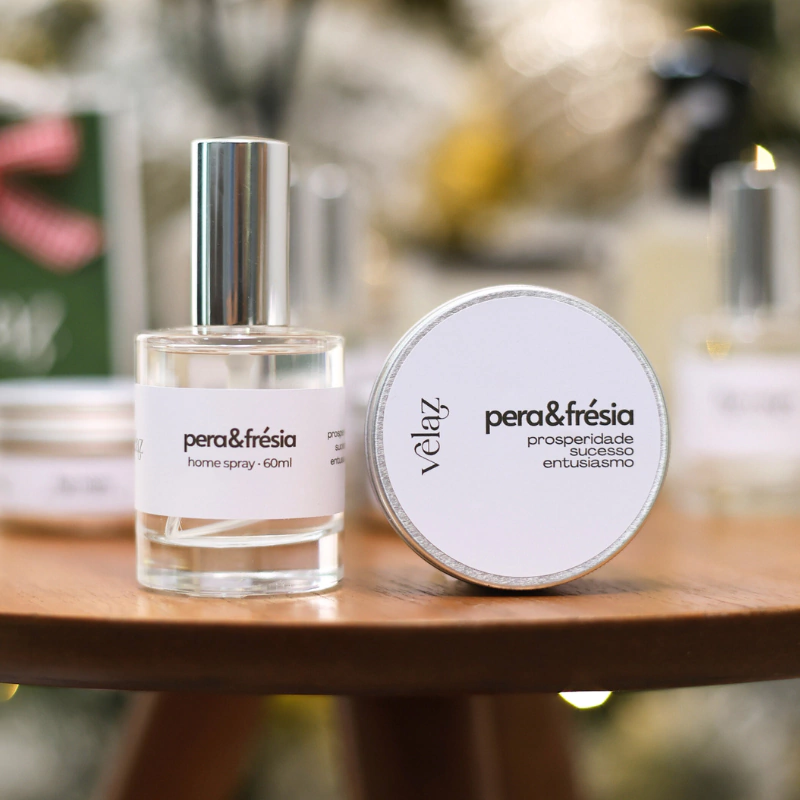 Pera & Frésia: Combinando a doçura delicada da pera e a sofisticação da frésia, este aroma é um convite para vibrar sucesso, entusiasmo e prosperidade. Ideal para presentear e surpreender com uma fragrância refinada e inspiradora.